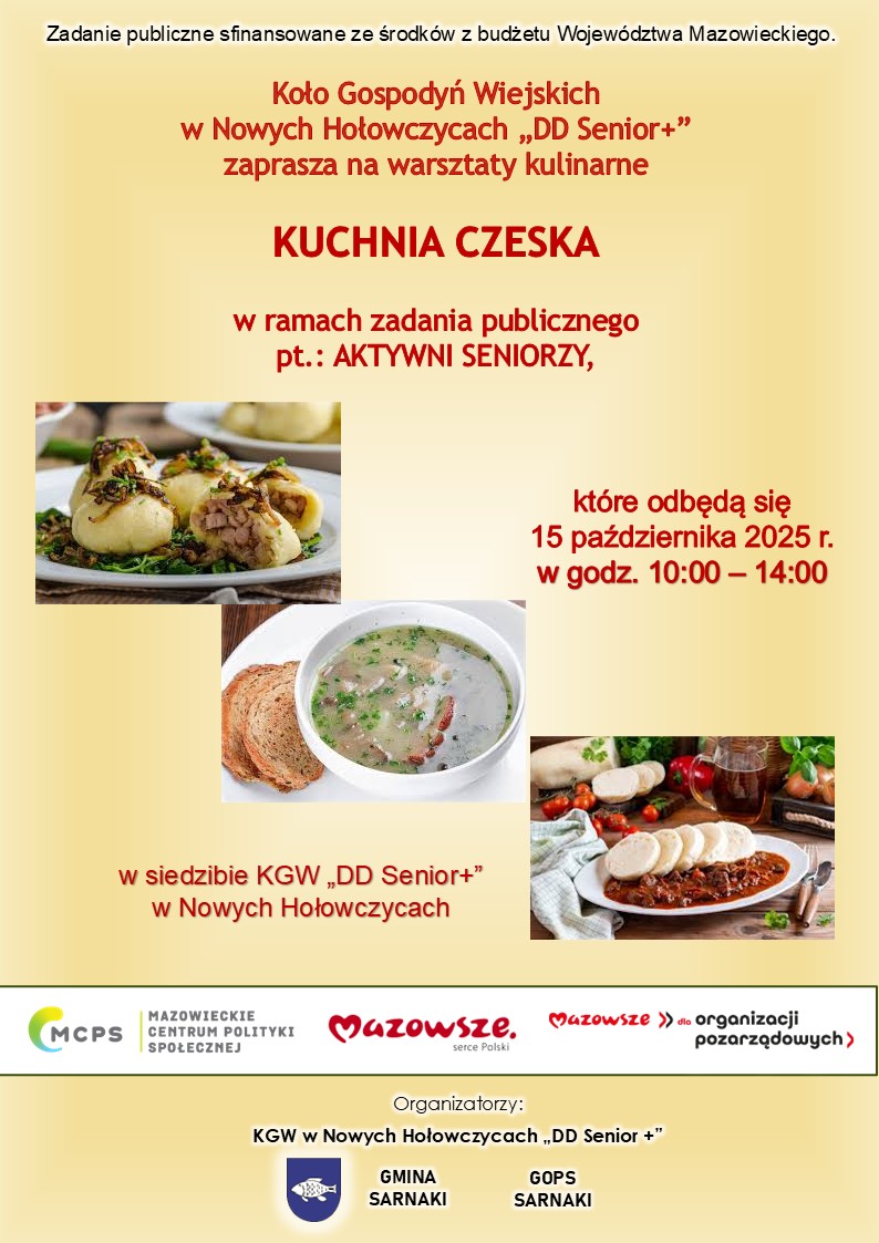 Zaproszenie – KUCHNIA CZESKA – w ramach zadania publicznego pt.: AKTYWNI SENIORZY