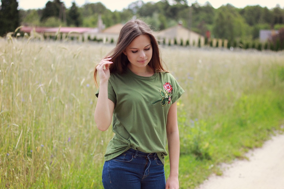 Ciemne, dopasowane spodnie świetnie nadadzą się jako baza do każdej stylizacji. Mimo, iż mamy lato, czasem po prostu mam ochotę na coś ciemniejszego, stonowanego. A tak btw - dajcie koniecznie znać czy i Was dopadła moda na "hafty" - na ubraniach rzecz jasna ;)