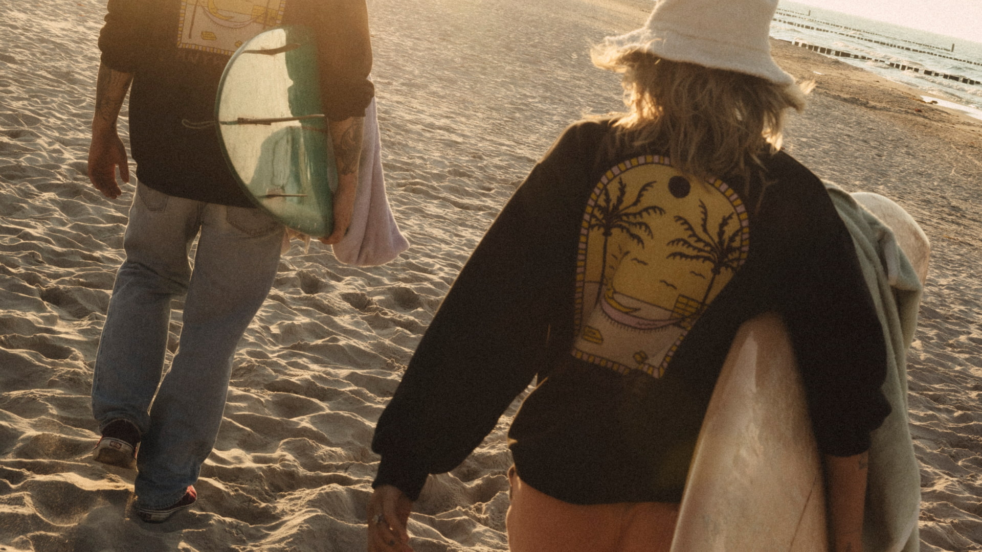 T-shirt to podstawa każdej letniej szafy. W tej kolekcji pojawia się w wersji unisex, o prostym pudełkowym kroju. Wykonany z organicznej bawełny, jest przewiewny i przyjemny w noszeniu. Z przodu zdobi go subtelne logo, a z tyłu grafika z palmą i słońcem – motyw, który od razu przywołuje wakacyjne skojarzenia. To uniwersalny element pasujący zarówno do jeansów, jak i szortów czy spódnicy.