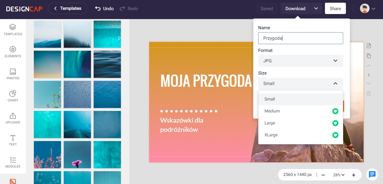 Swój projekt można zapisać w kilku formatach oraz rozmiarach.