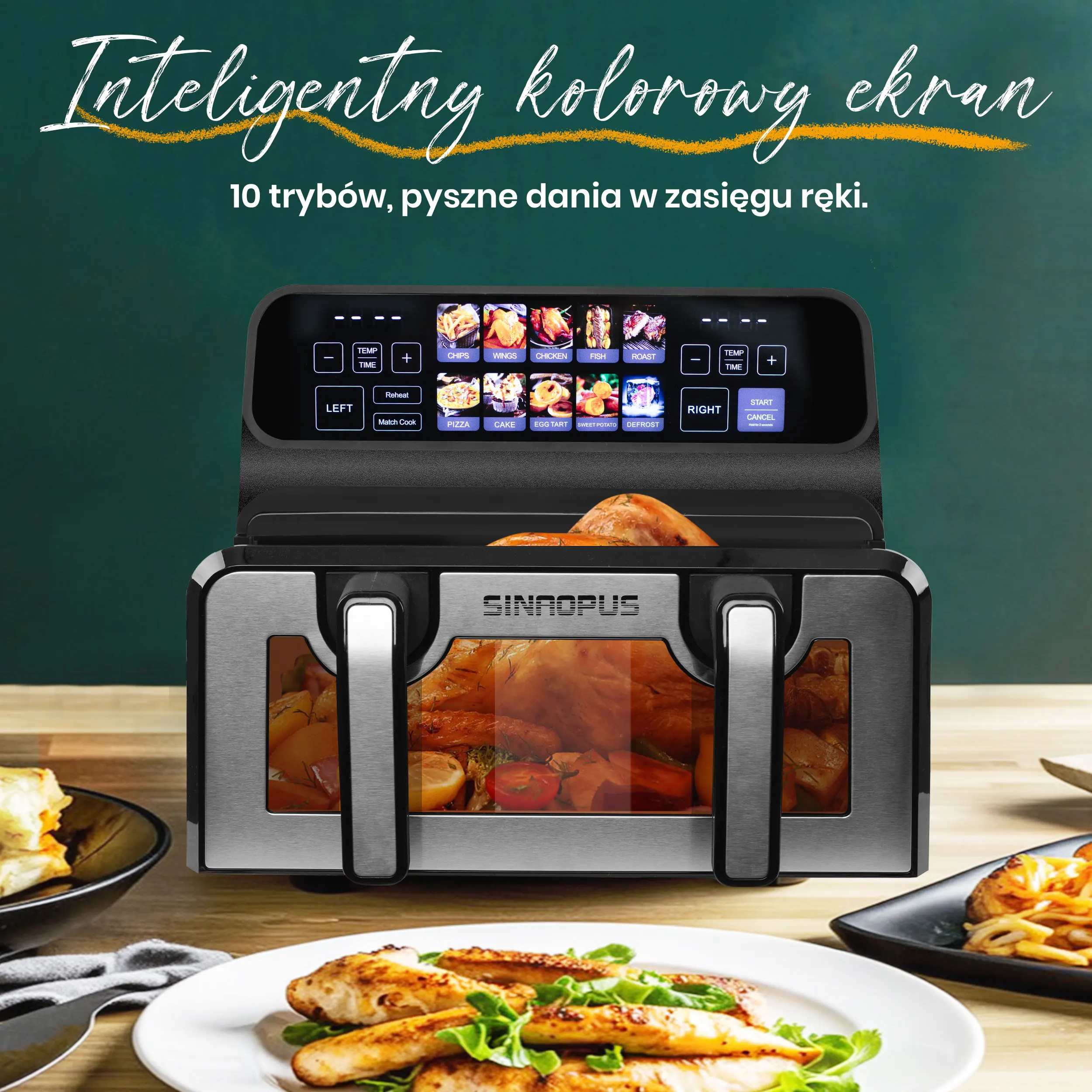 Sinaopus 2200W Hot Air Fryer Dual Basket 9 L XXL Multi-Function Air Fryer with LED Touch Screen Timable Auto Programmes