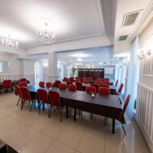 Na parterze jest sala bankietowa na 100 osób. Jest też kuchnia z wyposażeniem umożliwiającym przygotowanie posiłków dla wspomnianej liczby gości.