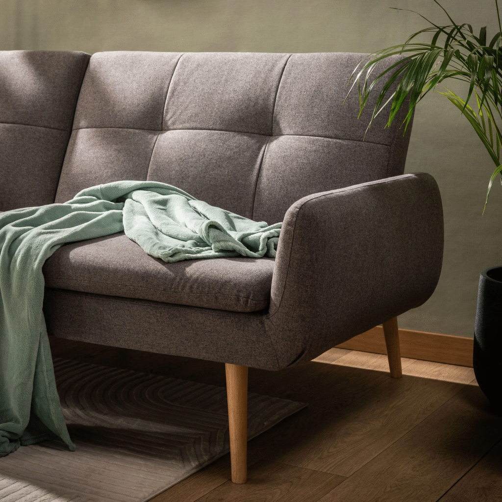 Sofa z funkcją spania powleczona tkaniną odpychającą rozlane ciecze. Na zdjęciu model z kolekcji Agaty