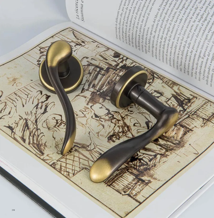 Pięknym dopełnieniem drzwi we wnętrzach urządzonych w tradycyjnym stylu, vintage, rustykalnym, francuskim są klamki stylizowane na pochodzące z różnych epok. Podkreślą kolekcję figur z brązu i książek na regale. Świetnym przykładem jest klamka o prostej formie w kolorze brązu, przez który przebija się złoto. Smukła forma, a zarazem interesujące połączenie kolorystyczne dają efekt niezwykłej estetyki.