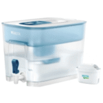 BRITA Flow to dzbanek w formie dystrybutora wody o pojemności aż 8,2 litra (zbiornik filtrujący 5,2 litra). Produkt sprawdzi się nie tylko przy filtrowaniu wody do picia, ale również do gotowania czy korzystania z urządzeń AGD, np. z ekspresu do kawy. Model współpracuje z wkładami Maxtra Pro Pure Performance o wydajności 150 litrów.