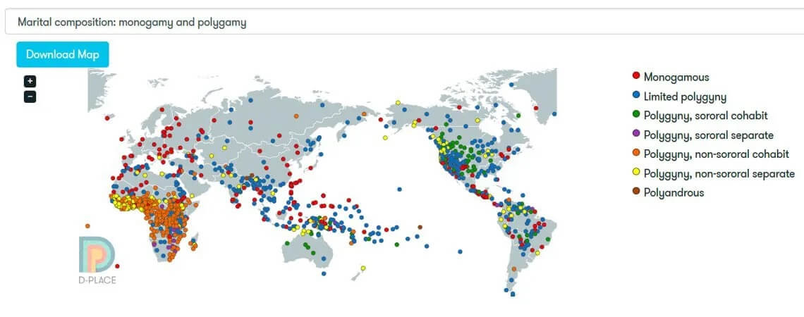 Północni Eurazjaci historycznie skłaniali się ku (absolutnej lub zmodyfikowanej) monogamii z powodu konieczności inwestycji mężczyzny w przetrwanie zimy. Świat muzułmański z kolei historycznie skłaniał się ku (absolutnej lub zmodyfikowanej) poligamii, natomiast Afryka Subsaharyjska rzadko wymagała od kobiet czystości przedmałżeńskiej, ponieważ kobiety mogły tam utrzymać się samodzielnie. Rezultaty tych różnic widać powyżej.