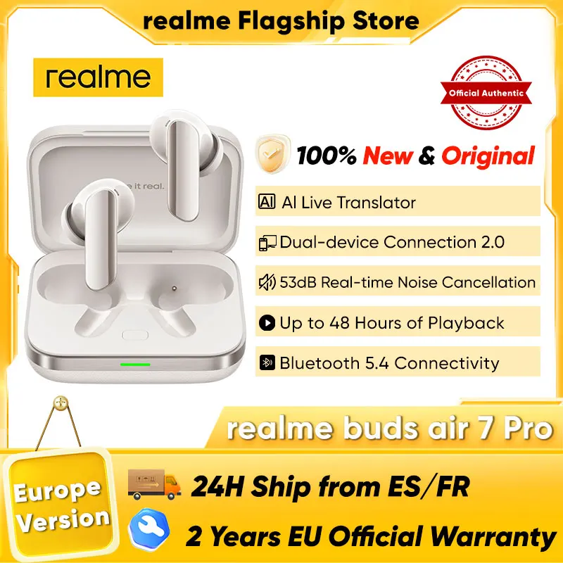 Realme Buds Air 7 Pro Ai Bluetooth Earphone 53Db 5000Hz Noise Cancellation Bt 5.4 48 Hours Battery Life Hi-Res Lhdc 5.0 Ip55 New