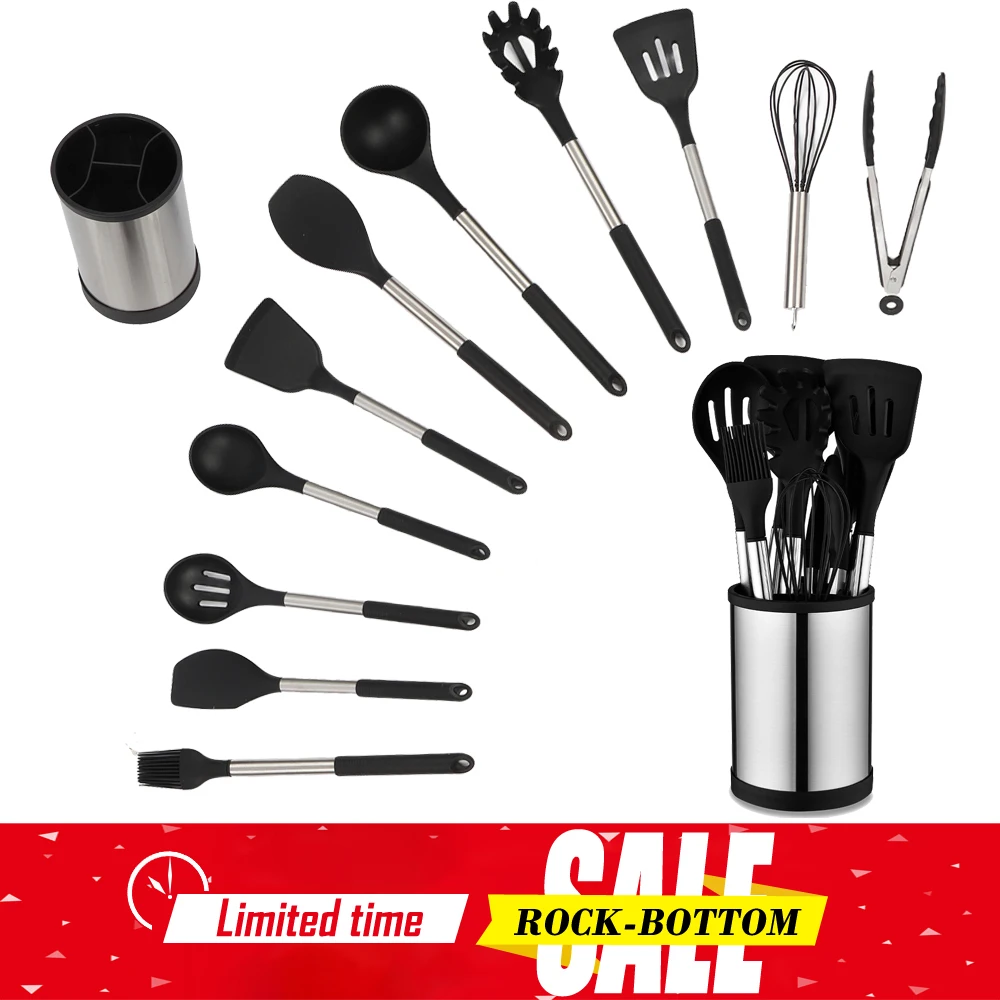 12Pcs Silicone Kitchen Utensils Nonstick Kitchenware Stainless Steel Spatula Spoon Kit Kitchen Tools For Pots And Pan