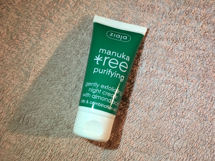 Ziaja Manuka Tree Purifying to mikrozłuszczający krem na noc przeciw trądzikowi, zawierający w swoim składzie kwas migdałowy. Za 50 ml produktu zapłacimy 19 złotych, a krem okazuje się być dość wydajny. jeżeli widząc słowo kwas, które pojawiło się w składzie kremu przestraszyłyście się, to mogę Was zapewnić, iż owo 3% kwasu migdałowego jest bardzo niewielką ilością i podczas jego stosowania nie powinny nas spotkać żadne większe problemy z tym związane. Producent zapewnia, iż krem ma przynieść skórze równowagę i świeżość. Zawiera substancje czynne, głęboko oczyszczające: